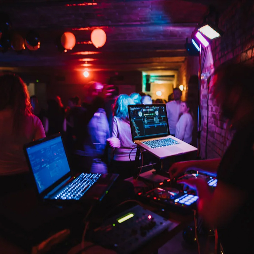 Ob Beschallung, Lichtkonzept, DJ-Setup oder Präsentationstechnik – wir kümmern uns um die technische Ausstattung und stimmen sie auf Raum, Ablauf und Gästezahl ab. Funktional, hochwertig und zuverlässig betreut.