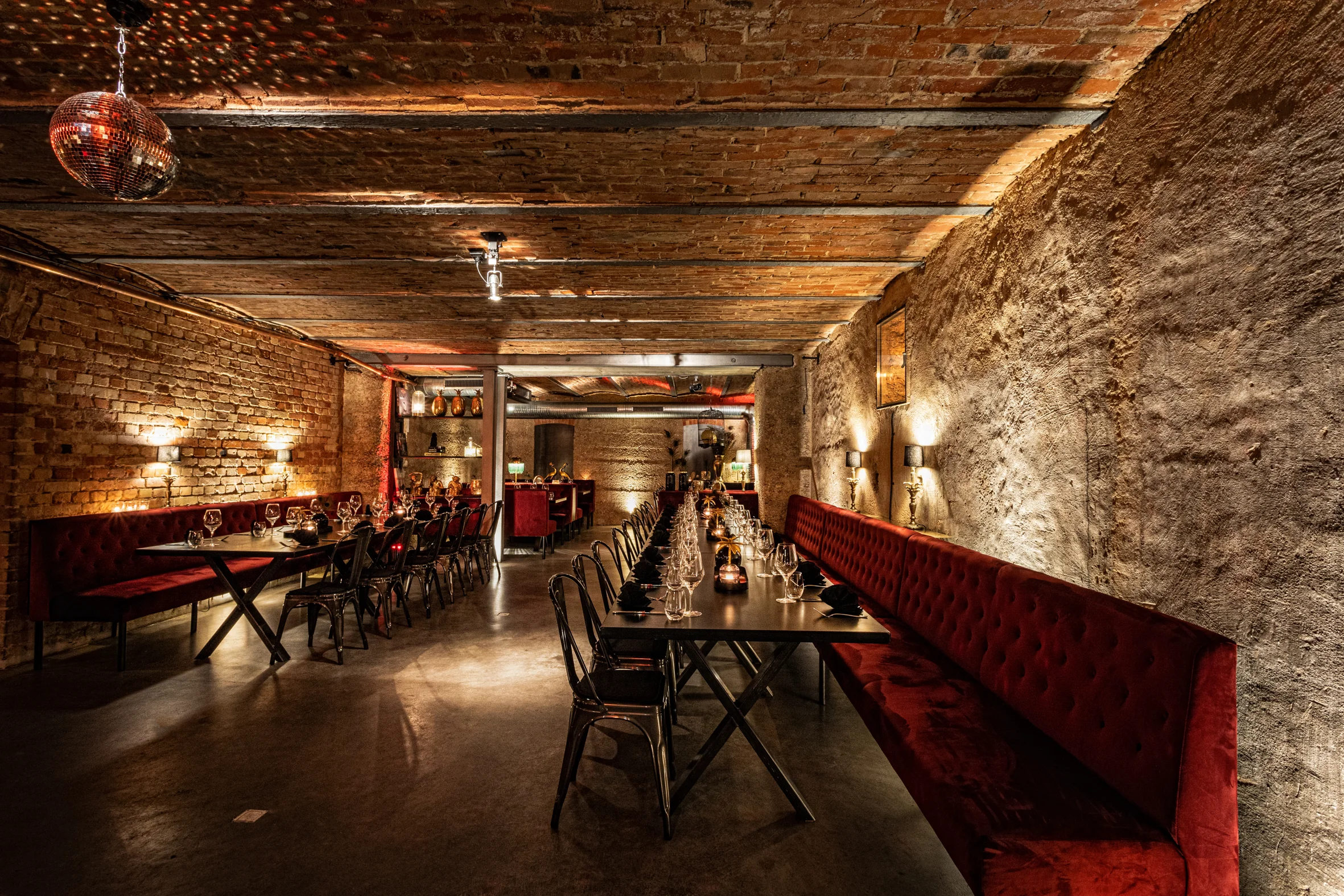 Historische Architektur, warmes Licht und besondere Details schaffen eine Atmosphäre, die festlich wirkt, ohne überladen zu sein. Unsere drei verbundenen Räume ermöglichen flexible Formate – vom gesetzten Menü bis zur Feier mit fließendem Übergang zur Tanzfläche.